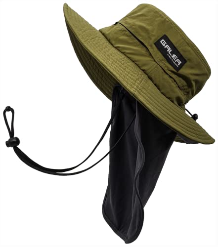 ガレアのフィッシングハットは、耐候性実験済み生地を使用し、日焼け防止に最適な広いつばと日除け付き。紐付きで、安定した装着感を提供します。