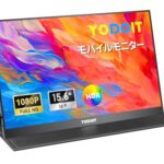 Yodoit 15.6インチポータブルモニターは、FHD解像度(1920×1080)を持ち、HDMI接続に対応。スリム設計で持ち運びやすく、ゲームや作業に最適です。内蔵バッテリーとスピーカー付き。