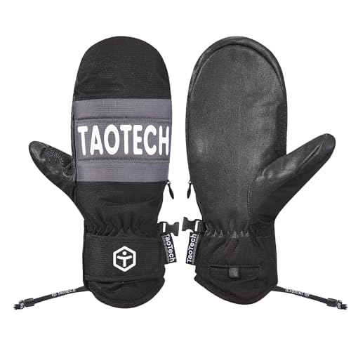 TaoTechのスノーボードグローブは、防水仕様でリストガード付き。男女兼用で5本指インナーも装備。エントリーモデルで、スタイリッシュなブラックデザイン。
