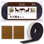 フローリング傷防止テープ(1m×3本)です。幅2cm、厚さ3mmのフェルト素材で、音を抑えます。椅子やソファに最適。接着力UPのため、紙やすり2枚付属(ブラック)。