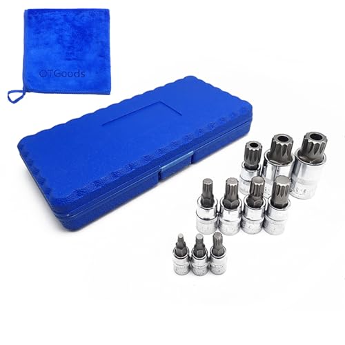 トリプルスクエアスプラインビットソケットセットは、S2スチール製で、12ポイントの設計。1/2、1/4、3/8インチドライブに対応し、サイズは4mmから18mmまでの10個が専用ケースに収められています。