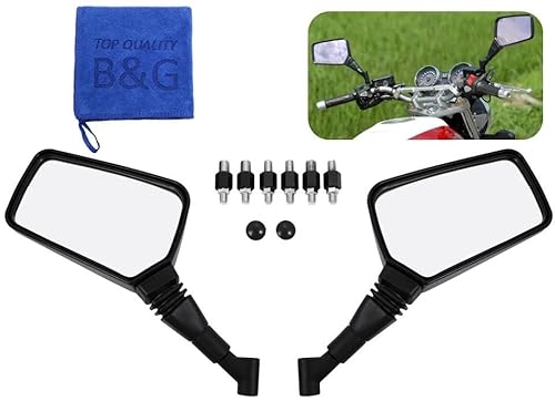 衝撃に強い高強度ABS製のバイク用スクエアミラー。左右セットで8mmと10mmの正・逆ネジに対応。DIO、JOG、カブ等の汎用品。アダプター付属で取り付け簡単。