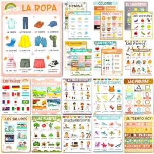 AmazingSpark 24ピース スペイン語教室デコレーション 8×10インチ スペイン語ポスター 教室用 小学校 教育ポスター (レインボー)