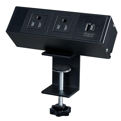 FLEXISPOT 電源タップ PS022は、USB付きの2口タイプで、3P Type A & Type Cに対応。クランプ式で取り付けも簡単。1.5mの電源コード、125V 10Aの対応で便利です。