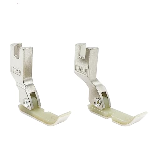 テフロン片押さえ左右セットは、幅約5mmで職業用・工業用ミシンに対応。ファスナー押さえとしても優れた機能を持ち、滑りの良いテフロン素材が生地をしっかり支えます。2点セットで作業効率をアップ。
