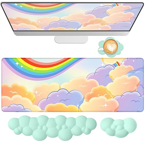 A.JAZZ 4IN1 ラージマウスパッド リストレストセット 手首サポート 大型マウスパッド ハンドレスト レーザー&光学式マウス対応 マウスパッド キーボードパッド 美しくてかわいい図案 800mm×300mm×3mm 安定したラバー素材 パソコンクッションセット キーボード用リストレスト フレッシュグリーン+セピアの製品情報
