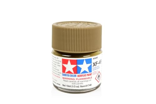 タミヤ アクリルミニ XF49 カーキは、模型に最適な水性アクリル塗料です。鮮やかなカーキ色で、乾燥後は剥がれにくく、発色が良いのが特徴です。筆塗りやエアブラシ塗装に対応しています。