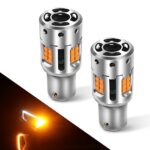 KINMIFULIGHT S25ウィンカーバルブは冷却ファン搭載でハイフラ防止、高級感あるキャンセラー内蔵LEDウィンカー球。180度、12V車用、無極性、アンバー色で2個1セット。