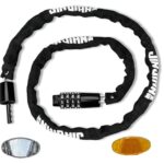 KUWAIのチェーンロックは、4桁ダイヤル式で無設定パスワード可能。重量340g、長さ100cmで軽量設計。高い盗難防止機能を持ち、自転車やバイクに最適。