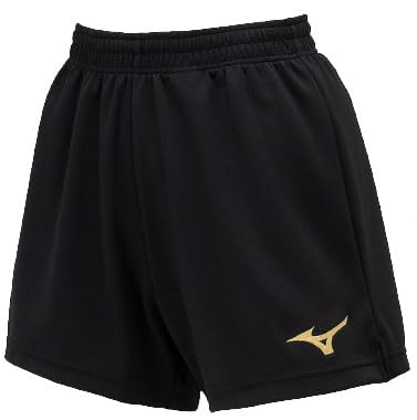 ミズノのバレーボールゲームパンツは、ニット素材で股下11cmのL寸。吸汗速乾性に優れたデザインで、快適なプレーをサポート。カラーはブラック/ゴールド、サイズはSです。