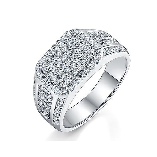 Gem’s Beautyのモアッサナイトリングは、925スターリングシルバー製で、ホワイトゴールドメッキ仕上げ。サイズは8から12のメンズヒップホップピンキーリング。華やかなデザインで、ラグジュアリーな印象を与えます。