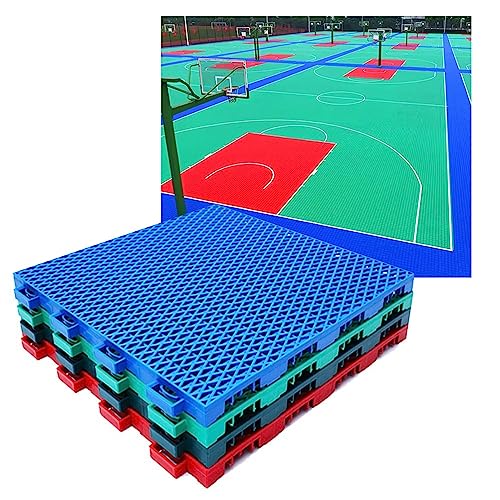 屋外で使用可能な10個のジョイントマット、サイズ30.6 cm。バスケットボールやテニス、バレーボール、バドミントンのコートに最適。DIYスポーツフローリングに最適な青色のタイルです。