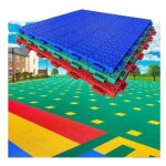 屋外防水の25cmモジュラージョイントマット。プラスチック製で耐候性があり、取り付けが簡単。スポーツやエクササイズに最適。10枚セット、カラーバリエーションはブルーです。