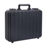 アルミアタッシュケースは、12インチのブラックデザインでビジネスや旅行に最適。TSAロック付きで安全性が高く、書類やノートパソコンを収納可能。耐久性に優れたアルミ製で、ツールボックスとしても使用できます。