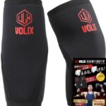 VOLIX エルボースリーブは7mm厚で、肘をしっかりサポート。筋トレやベンチプレスに最適な安定感を提供します。サイズはM、赤ロゴデザインが特徴で、ウエイトリフティングにも対応。