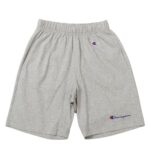 チャンピオン ハーフパンツ キッズ 綿100%のショーツ。両脇にスラッシュポケット、ヒップにパッチポケット、スクリプトロゴ刺繍。ベーシックなデザイン、色はオックスフォードグレー、サイズ140。