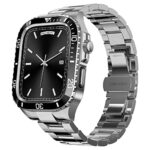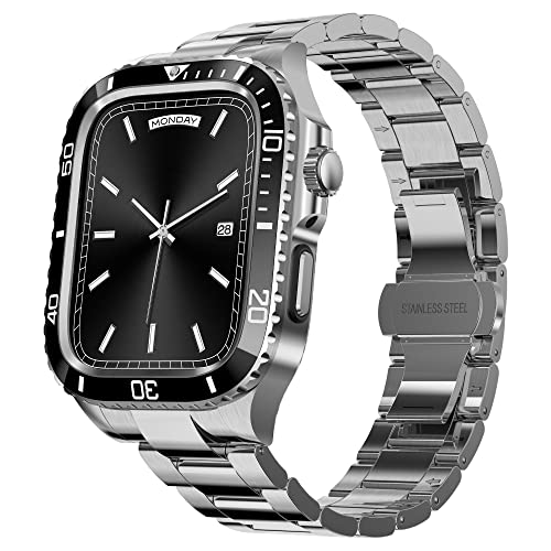 BinGeLiのApple Watchバンドは、ステンレス製のメタルベルトと一体型ケースで、耐衝撃性と耐久性を兼ね備えています。9/8/7 45mmおよびSE2/6/5/4/SE 44mmに対応。デラックスなシルバー仕上げ。