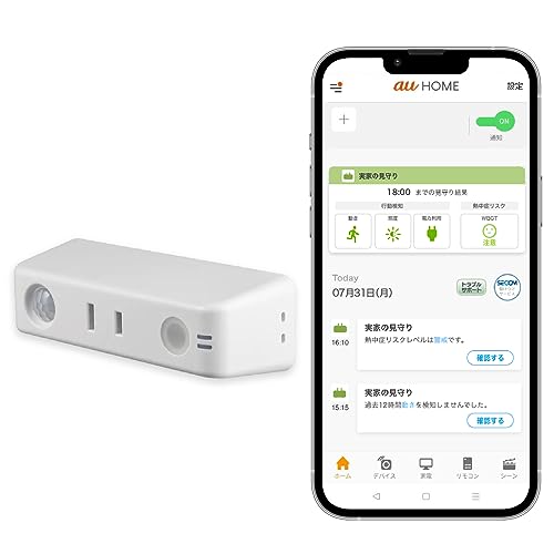 かんたん見守りプラグ UEH01Aは、LTE内蔵でWi-Fi不要。人感・照度・温湿度・電力利用状況をスマホで遠隔モニタリング。コンセントに挿すだけの手軽さです。