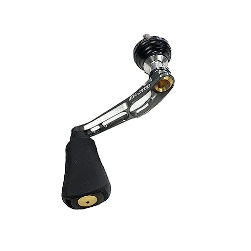 エアーステアハンドルは、ダイワ用の40mmモデルで新シリコンフィットノブを搭載。色はガンメタとゴールドの組み合わせで、滑りにくく操作性抜群です。