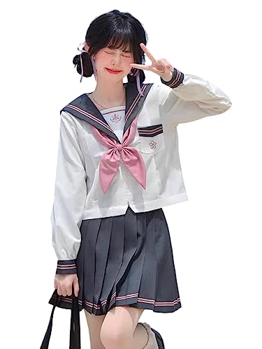 このセーラー服3点セットは、長袖とスカートが含まれた本格的な女子制服です。前開きデザインや蝶結びリボンが特徴で、ハロウィンや学校行事に最適。サイズはXLで、可愛さと清純さを兼ね備えています。