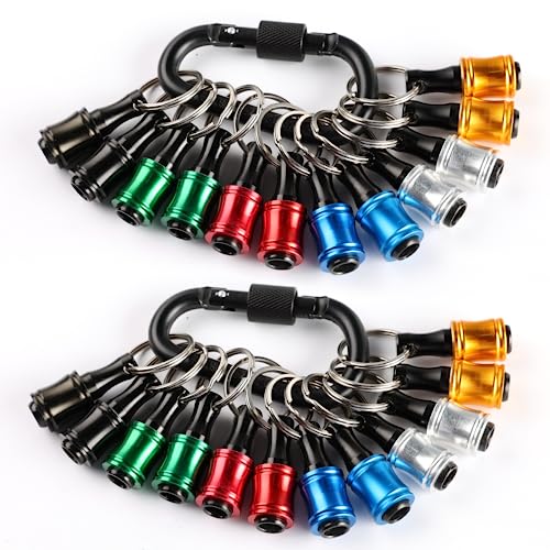 ポータブルビットホルダーキーホルダー24個、1/4インチ六角シャンクドライバービットクリップインパクトドライバー用フレキシブルドリルビット延長ナットドライバー、ブラックカラビナ付き、クイックリリース軽量ドリルねじアダプター。の高価買取