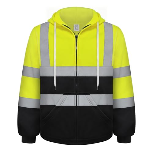 TCCFCCT 高視認性パーカー クラス3 高視認性パーカー メンズ レディース ジッパー付き 高視認性 安全パーカー 男性用 建設用 測量士 汚れ防止 黒底 イエロー 2XLの高価買取