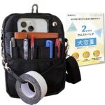 Kugusa【えるぽっけ】ナースポーチは、多機能で大容量のエプロンバッグです。ウエストバッグとしても使え、看護や介護、文具収納に最適。2WAYショルダー仕様。ブラックでスタイリッシュ。