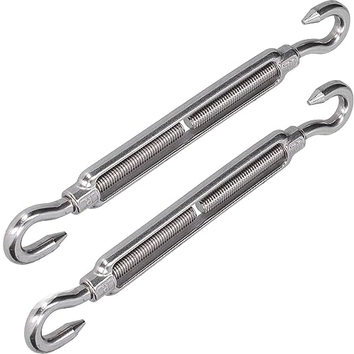 304ステンレススチール フック&フック ターンバックル ワイヤーロープ テンションターンバックル 調節可能 M10スレッド直径 高耐久 フックからフックターンバックル 調節可能なワイヤーロープテンショナー (2個)の高価買取