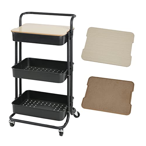 キッチンワゴン(3段・3層ローリングカート)は収納ラックで、アイランドとしても利用可能。キャスター付きで移動も簡単。大容量で60kgの耐荷重があり、組立も簡単なブラックの天板付きモデルです。