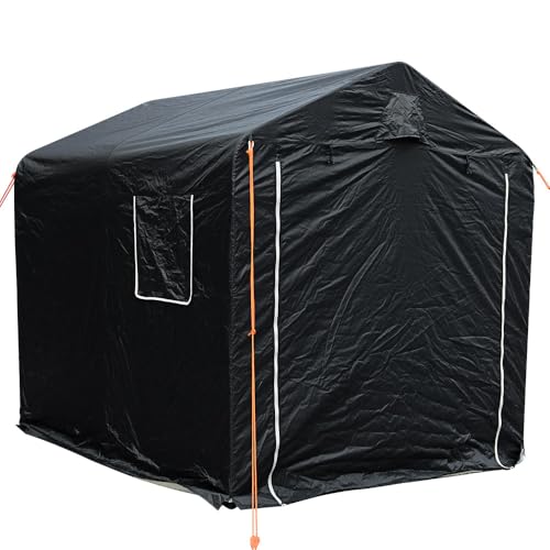 シェアスタイルの汎用バイクガレージは、中型バイク2台対応で、オートバイや自転車の収納に最適です。日除け、防水、盗難防止機能を備えたタイヤ保管用タイヤカバーも付属し、カスタムパーツに対応します。