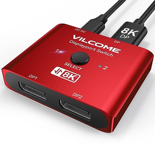 Vilcome DisplayPort Switchは、8K@60Hz、4K@120Hz、1080P@240Hzに対応した双方向スイッチャーです。プラグアンドプレイで簡単接続可能。
