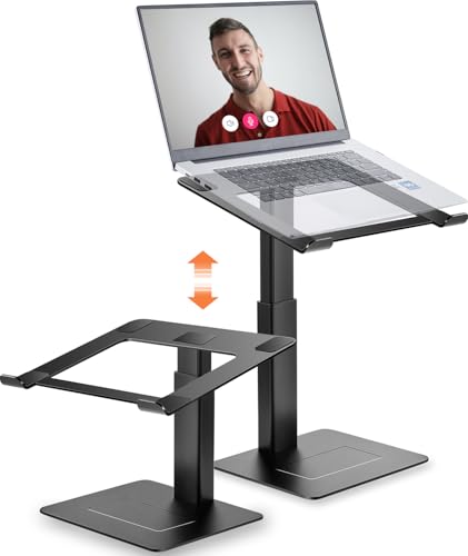 Supamir pcスタンドは16段階の高さ調整が可能で、ノートパソコンを座位・立位両用に使用できます。人間工学設計で、在宅勤務やDJ、ZOOM会議にも最適です。13-16.5インチ対応のブラックモデルです。