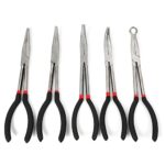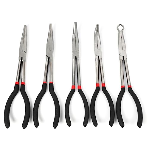 プロ仕様のラジオペンチプライヤーセット。5本セット、280mmのエクストラロングノーズプライヤー。ストレート、25度、45度、90度、0度の先曲がり、極細ステンレス製。精密な作業に最適なメカニック機器。