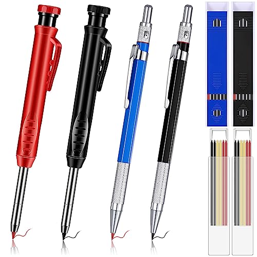 建築用シャーペンセットには、2本のメカニカルペンシル(2.0mm)、2本の深穴マーカーペン、4箱の替え芯が含まれています。設計や測量に最適な精密工具です。
