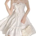 Lady Lazyの白ワンピースコスプレは、ノースリーブのミニドレスで、サイズはLです。清楚感あふれるデザインが魅力で、さまざまなコスプレシーンに適しています。