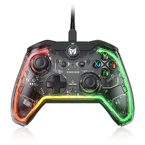 BIGBIG WON Rainbow Lite Switchコントローラー、PCコントローラー、Deadzone 0ジョイスティック、ヘアトリガー、追加多機能ボタン2つ、フルカスタマイズ可能、非対称振動モーター、PC&Switch用有線コントローラー 高価買取中