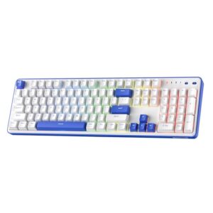 e元素ゲーミングキーボードは、赤軸・青軸のメカニカル式で、USB接続の81キー安定性を持ち、青色LEDバックライトと防水機能を搭載。ゲーマー向けの英語配列モデル。