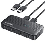 SOOMFONのUSB切替器は、4つの入力ポートと4つの出力ポートを備え、複数のデバイスを簡単に切り替え可能です。USB 3.0に対応し、高速データ転送を実現します。特にオフィスや家庭で便利。