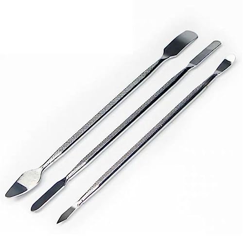 3本セットの金属こじ棒とヘラツールです。両頭型のクラフトツールで、スパチュラと金属ヘラとして使用可能。パソコンやスマホの分解・修理に最適な細工棒です。
