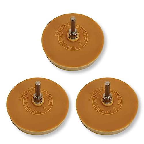ゴムトレーサー工具3個セットは、エアードリルや電動ドリルに対応。車検時のボディシール剥がしや消し作業に最適で、両面テープの除去も軽く回転させるだけで簡単。