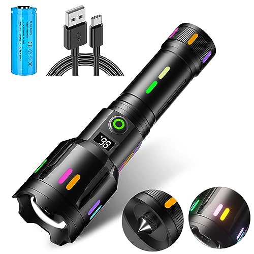 最新液晶画面デジタル表示のLED懐中電灯。強力で軍用仕様、超高輝度、USB充電式。ズーム機能付き、6モード調光。防水・軽量設計、登山や夜釣り、災害対策に最適。