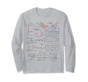 数学教師科学大学学校ギフトオタク主要数学 数学愛好家のためのカラフル方程式デザイン 長袖Tシャツ