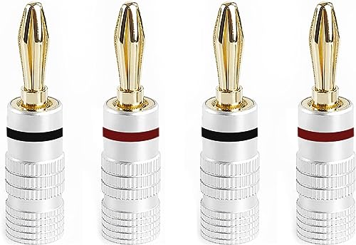 AMIUKON 24K金メッキのバナナプラグは、高品質のアルミメタルシェルを採用。スピーカーケーブルコネクターとして、12AWGから18AWGゲージに対応。4mmサイズで4本セット。