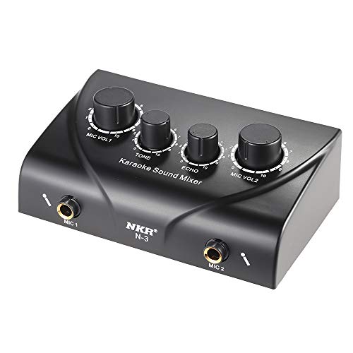 Kriccekalのポータブルデュアルマイク入力オーディオサウンドミキサーは、ブラックのデザインで、Usプラグ対応。カラオケや音楽制作に最適な機能を備えています。