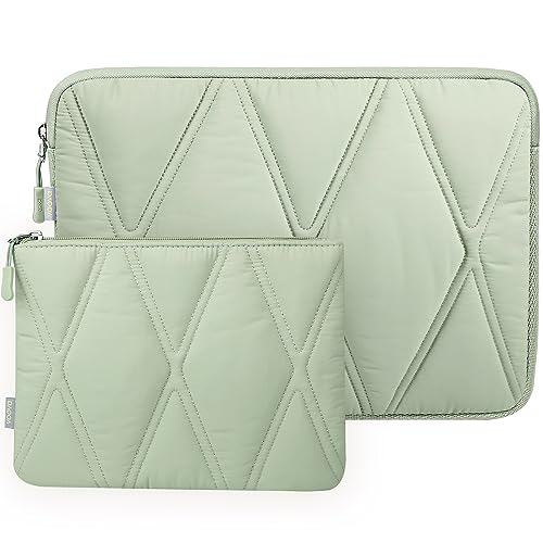 Voova Puffy パソコンケースは、13-13.3インチ対応で耐衝撃設計。軽量でかわいいデザインのPCバッグ。アクセサリーポーチ付き。MacBook Air/MacBook Pro 13に適合(セージグリーン)。