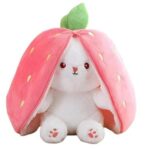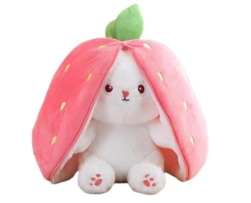 イチゴ色のニンジンバニーぬいぐるみ(18CM)は、かわいい動物型の抱き枕です。抱きしめたくなる変形タイプで、癒しの存在にぴったりです。