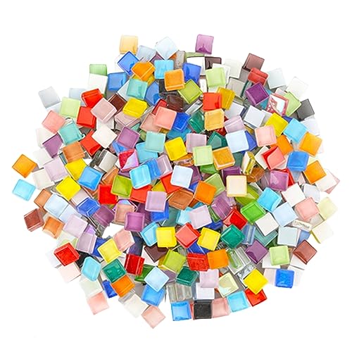 ガラスモザイクタイル、正方形の1cm角サイズで、カラフルな色合いが特徴。300g入りのセットで、DIYや内装、ハンドメイド、クラフトに最適です。