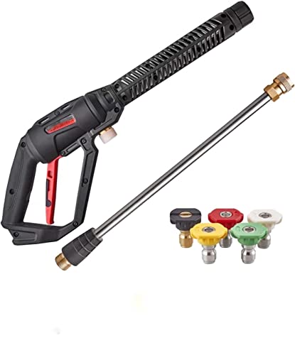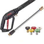 4000 PSIの高圧洗浄機ガン、延長ワンド、5つのノズルチップ付き。クイックコネクトアダプターセットと高圧洗浄機アクセサリが含まれています。