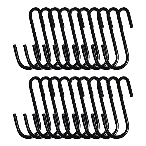 / aninako s字フック ステンレス製 20個入り 耐荷重10kg 吊り下げ S字 フック 収納 クローゼット/キッチン/風呂場/ベランダ/オフィス用 錆びない 丈夫 固定 おしゃれ 止め金具 (黒)