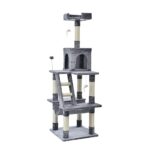 OSJのキャットタワーは全高155cmでシニア猫にも適した省スペース設計。麻紐とネズミおもちゃ2本付き。爪とぎや運動不足解消に最適です。おしゃれで組み立ても簡単。
